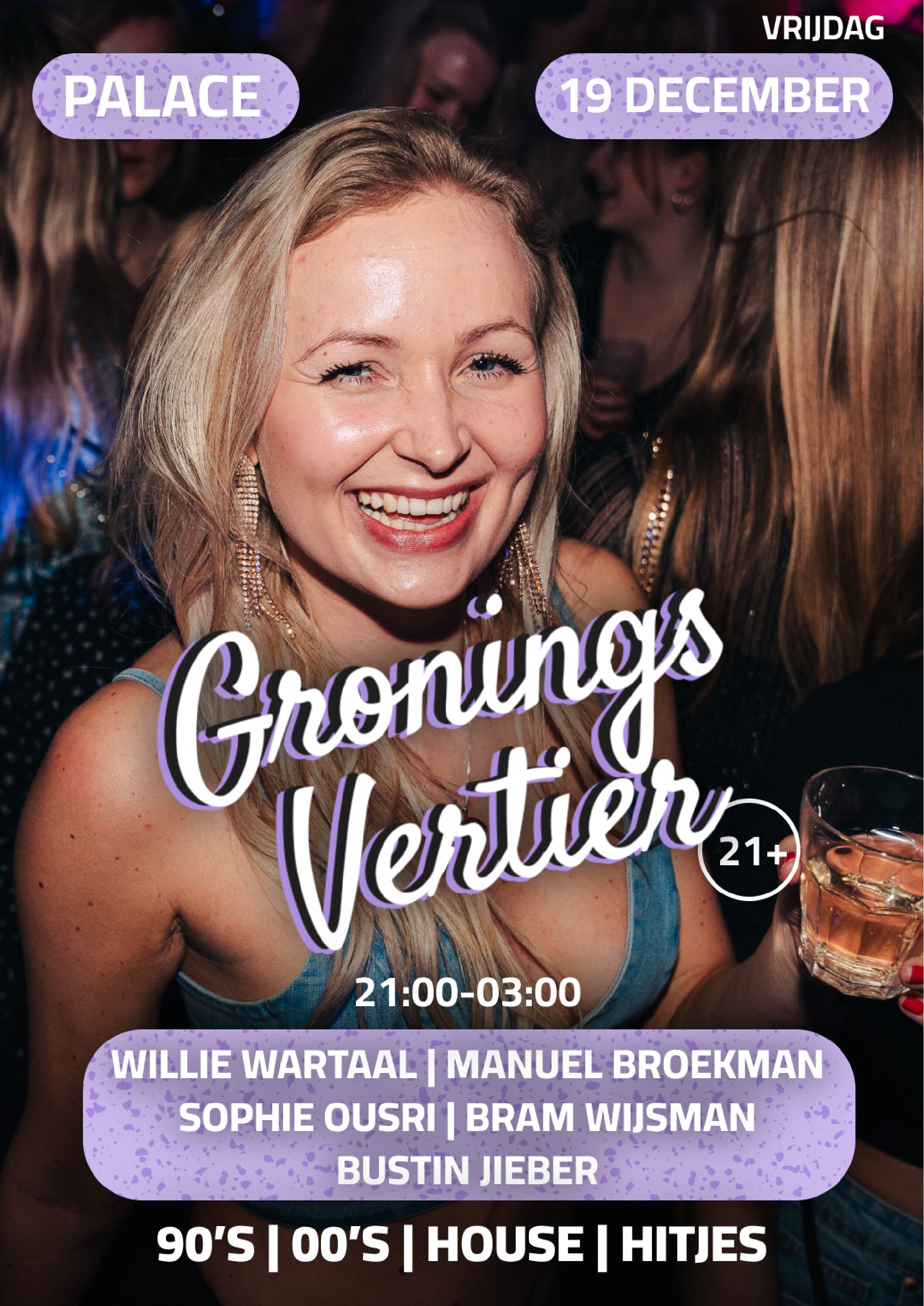 Op vrijdag 19 december keert GRONINGSVERTIER terug naar PALACE voor een nacht die je niet wilt missen!