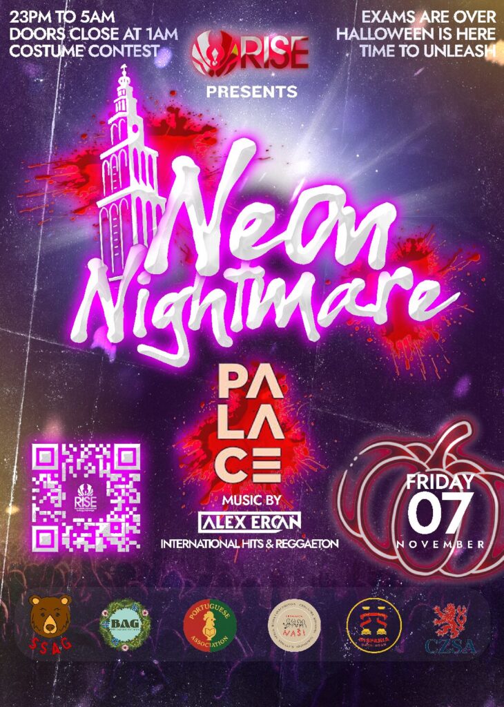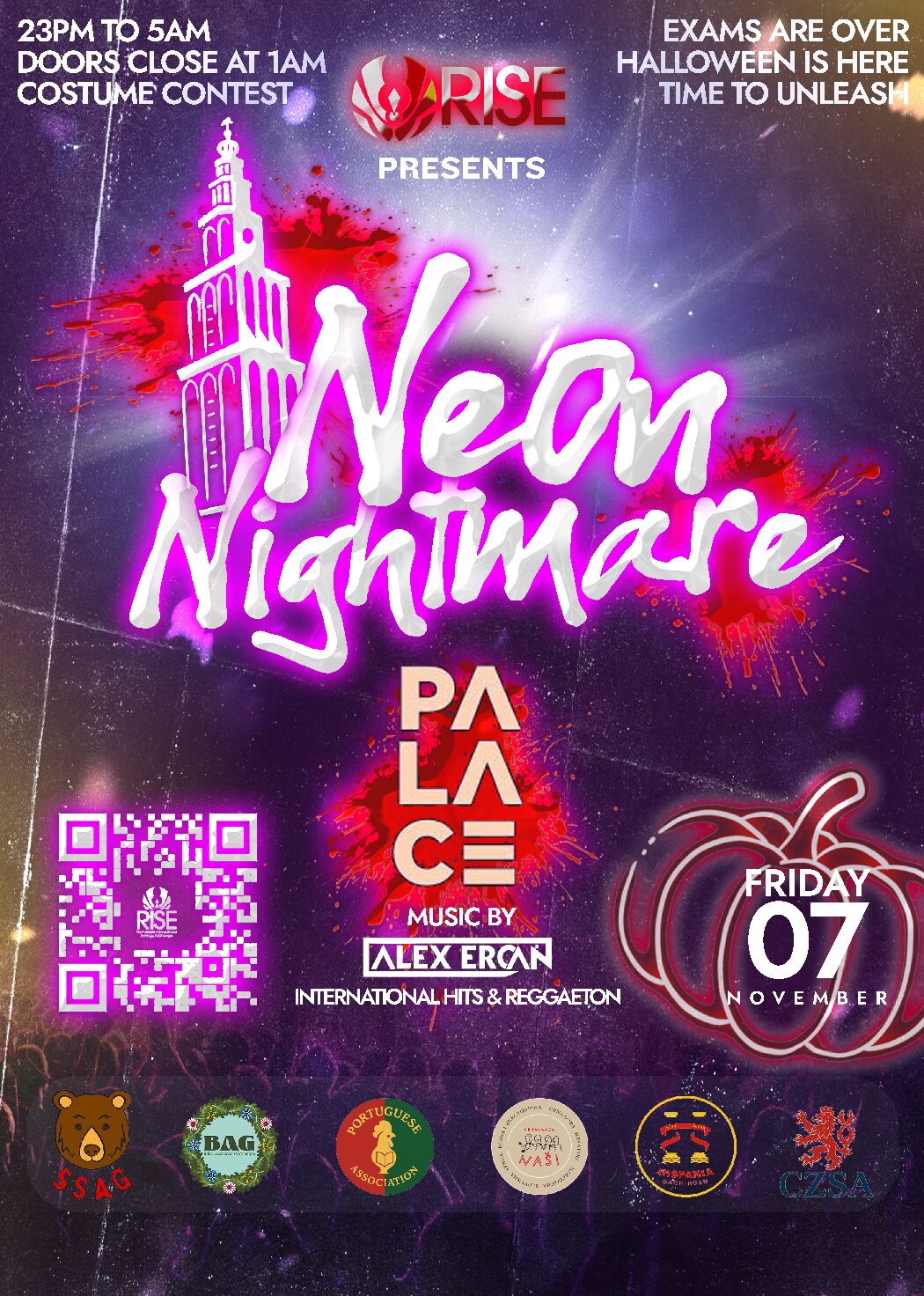 Samen met RISE EVENTS, Hispanica, Portuguese, The Baltic, NAΕ I en de Tsjechische & Slowaakse Studentenverenigingen verandert PALACE in een neonverlichte wereld waar schaduwen en kleuren samensmelten en de beats de nacht laten oplichten.